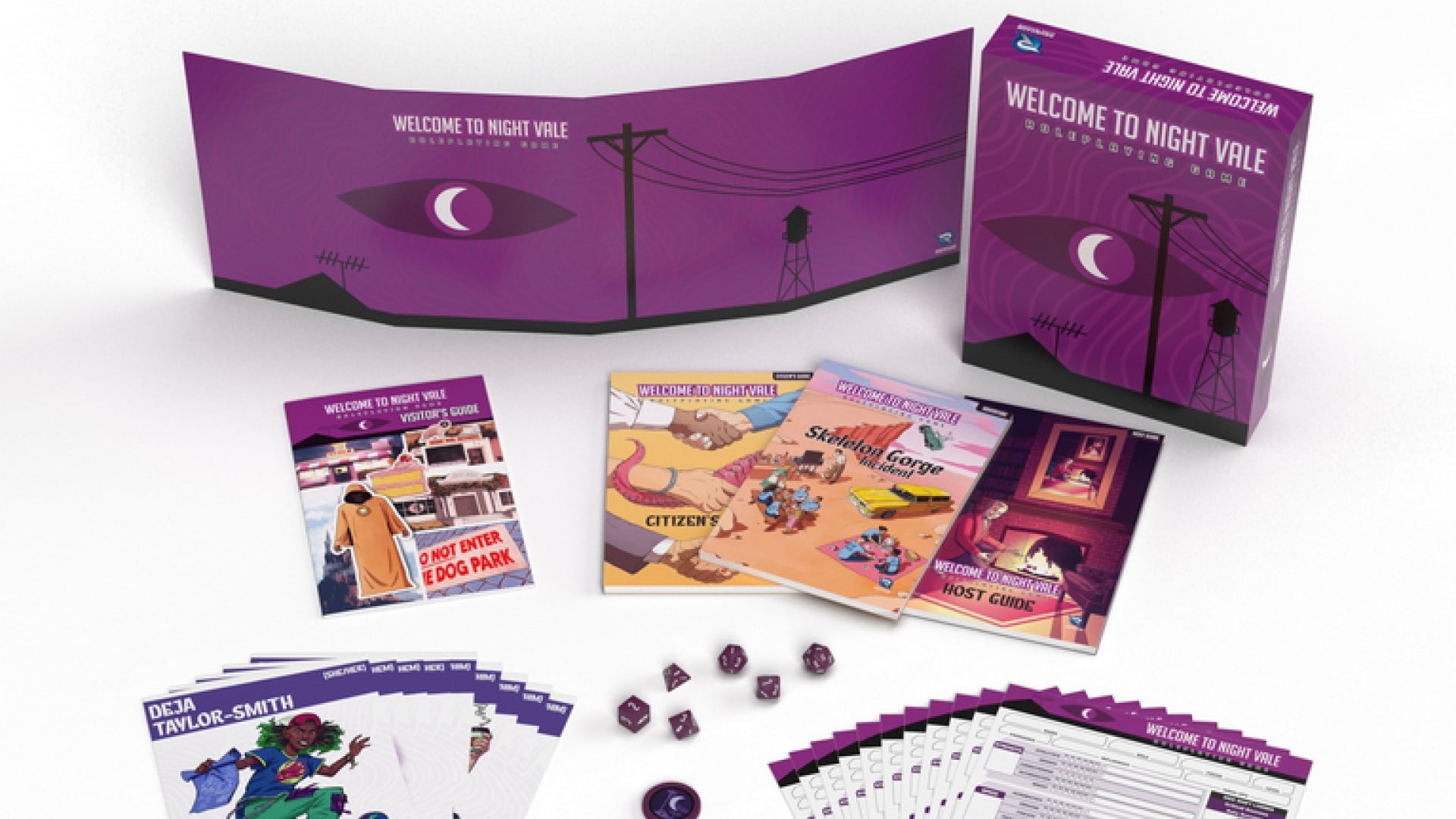 - Eight dice and a Welcome to Night Vale-themed Game Master Screen